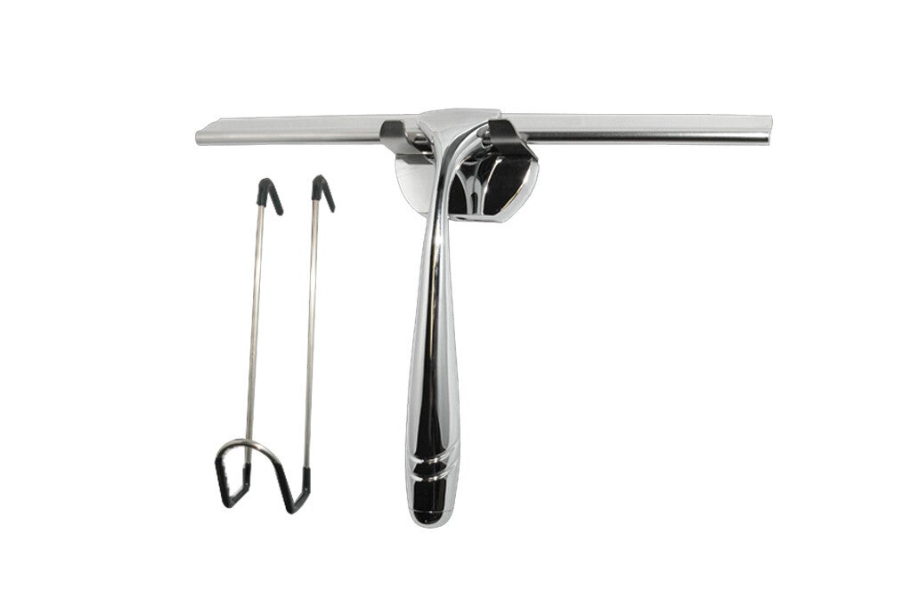 De “Luxe” handwisser is een stijlvol en functioneel accessoire voor je badkamer. Met zijn chromen afwerking voegt het een vleugje moderne elegantie toe aan elke douchecabine. De handwisser heeft een afmeting van 245 x 170 mm en wordt geleverd met het benodigde bevestigingsmateriaal, waaronder een reserverubber en ophanghaak voor douchewand- en muurbevestiging. Of het nu gaat om het schoonmaken van de douchewand of het verwijderen van waterdruppels na het douchen, deze handwisser biedt een handige oplossing. De combinatie van esthetiek en functionaliteit maakt de “Luxe” een must-have accessoire voor iedereen die een eigentijdse en georganiseerde badkameromgeving waardeert.
