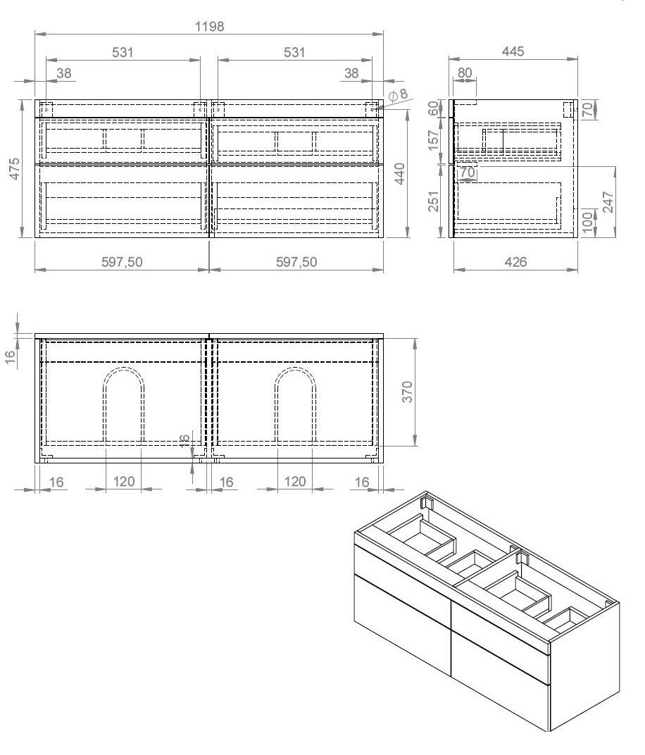 De “Beauty-120-Halifax-Greeploos” onderkast is een elegant en modern meubelstuk voor jouw badkamer. Met de halifax afwerking en strak greeploos ontwerp straalt het een eigentijdse elegantie uit die past in moderne badkamers. Deze onderkast is voorzien van vier laden met een “Push-to-open” systeem, waardoor je ze gemakkelijk kunt openen zonder de behoefte aan handgrepen. Met afmetingen van 120 cm breed, 44,5 cm diep en 47,5 cm hoog, biedt de kast voldoende opbergruimte. Deze onderkast is geschikt voor gebruik met opbouw wastafels of waskommen, wat flexibiliteit biedt in de badkamer.