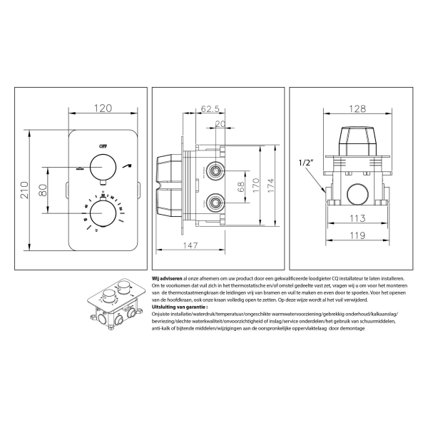 Deze one-pack inbouw-regendoucheset uit de serie Nancy bevat alles wat je nodig hebt voor een luxueuze douche-ervaring. De set bestaat uit de Inbouwthermostaat art. nr. 4008250, Opsteekmuuraansluiting art nr. 4008260, Handdouche art. nr. 4008300, Doucheslang art. nr. 4008290, Muurbeugel art. nr. 4008270 en de Regendouche art. nr. 4008280. Met de inbouwinstallatie krijgt je badkamer een strakke en moderne look en door het mat-gouden design krijgt de set ook een elegante uitstraling. Kies jij voor de verfrissende regendouche of gebruik je de handdouche voor ultiem comfort?