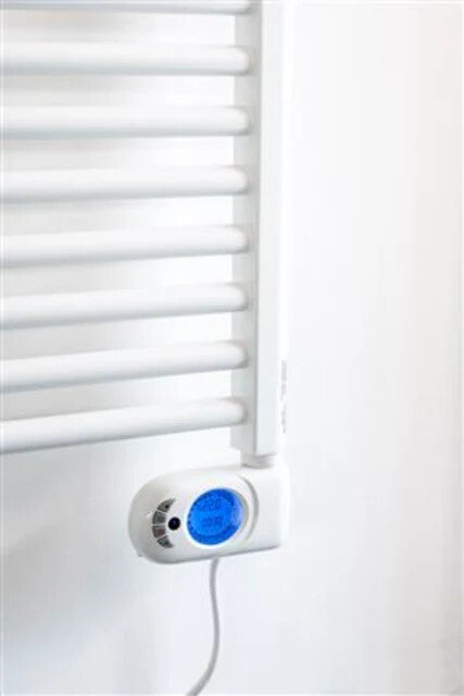 Deze elektrische handdoekradiator wordt compleet geleverd, inclusief voor gemonteerd elektrisch element, luxe digitale / programmeerbare kamerthermostaat en bevestigingsmateriaal.