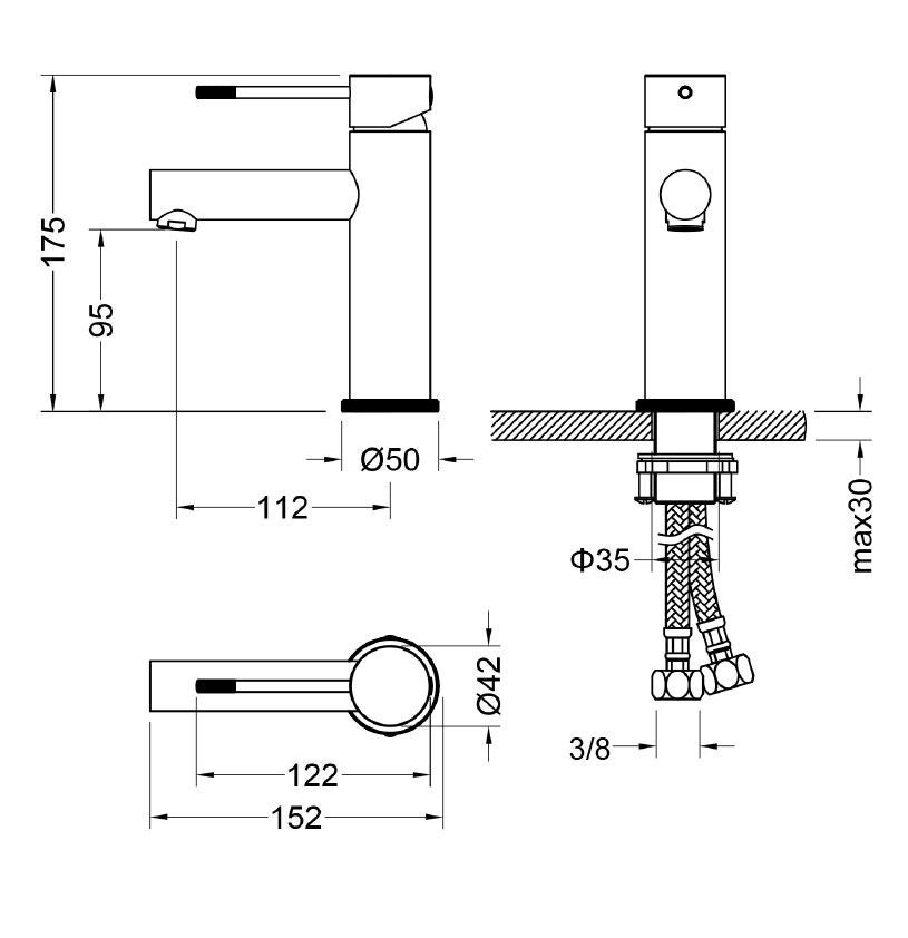 De wastafelmengkraan uit de serie Dijon in de kleur sunny bronze is een modern en stijlvol product dat een vleugje warmte toevoegt aan elke badkamer. De kraan heeft een diepte (voorsprong) van 152 mm, waardoor er voldoende ruimte is om comfortabel water te kunnen gebruiken. De wastafelmengkraan wordt geleverd met flexibele aansluitslangen van 35 cm x 3/8″ wartel, waardoor de installatie eenvoudig is. De kraan kan warm en koud water mengen, waardoor de watertemperatuur naar wens aangepast kan worden. Het keramische binnenwerk zorgt voor een soepele en nauwkeurige bediening. Met een totale hoogte van 175 mm is de kraan geschikt voor verschillende wastafels.