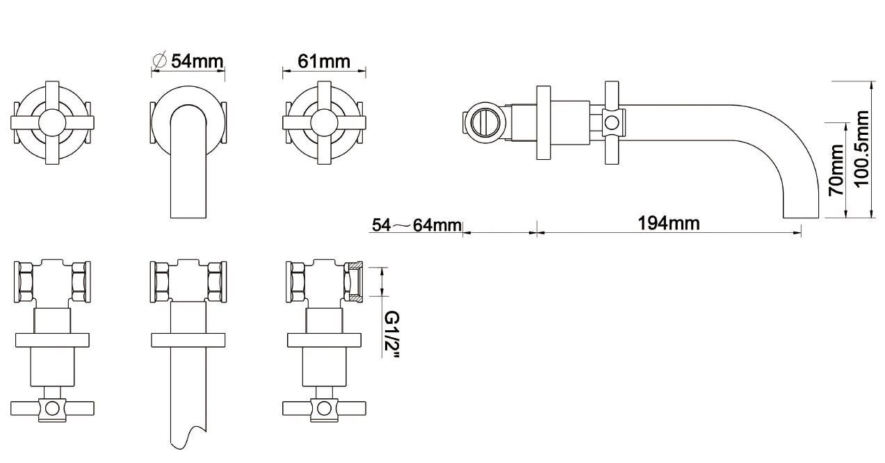 Uitvoering:Wandmengkraan inbouw 2 greeps