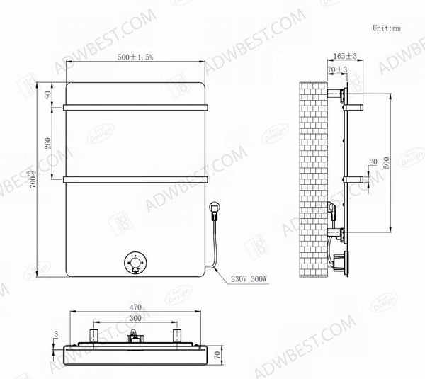 Best-Design "Brenner-White" Elektrische radiator Mat-wit 300W 700x500mm