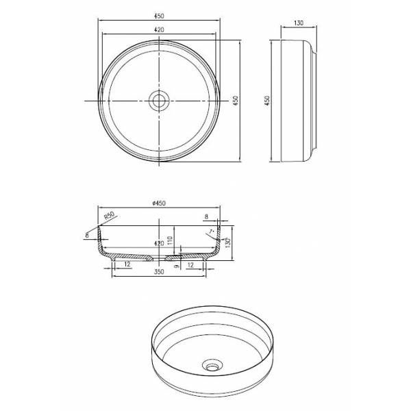 De “Lastic” opbouw waskom straalt eenvoud uit met een vleugje verfijning. Gemaakt van solid-surface in een matte witte kleur, voegt deze ronde waskom een tijdloze esthetiek toe aan uw badkamer. Met een diameter van 45 cm en een hoogte van 13 cm biedt het een praktische en elegante oplossing voor dagelijks gebruik. De waskom wordt geleverd met een bijpassende matte witte afvoerplug en heeft een centraal geplaatste afvoer. Met een subtiele randdikte van 0,8 cm straalt de “Lastic” waskom een ingetogen luxe uit. Als vrijstaand element voegt het een verfijnde touch toe aan uw badkamer.