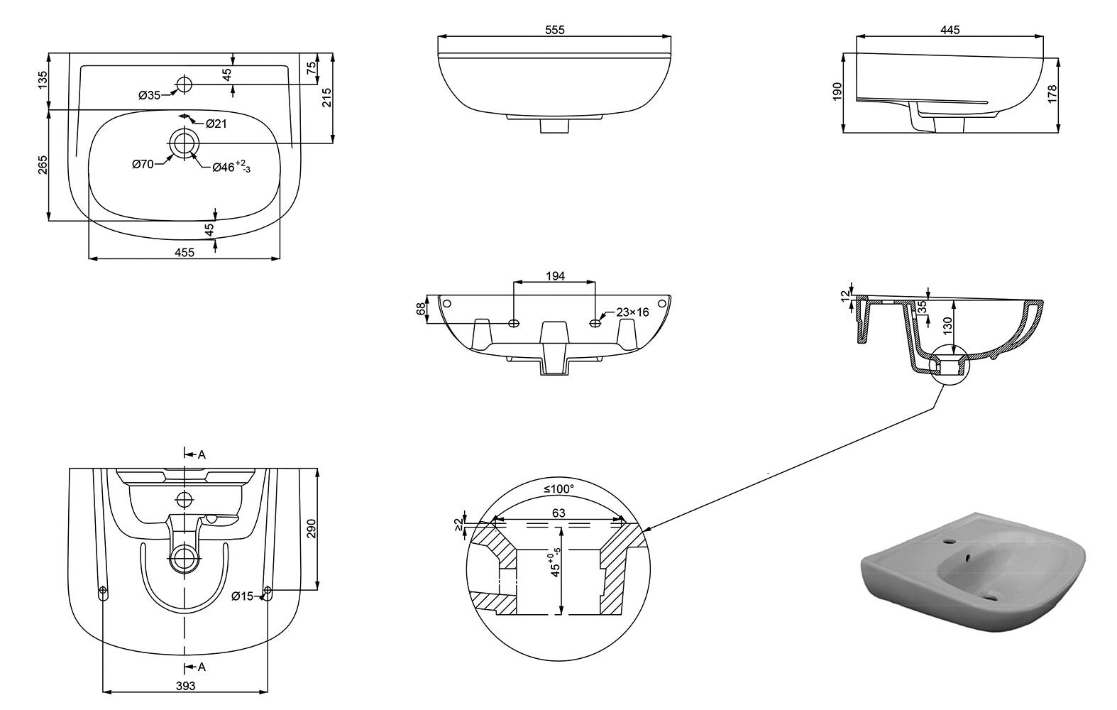 Diepte (voorsprong):45 cm