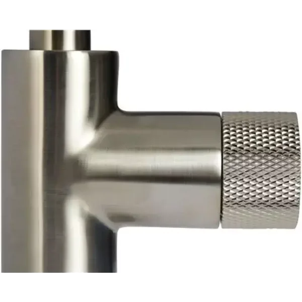 De kraan is afgewerkt met een geborsteld nikkele kleur, en past in elke badkamer.