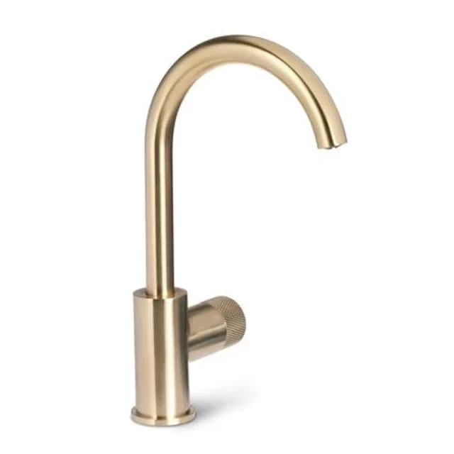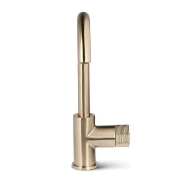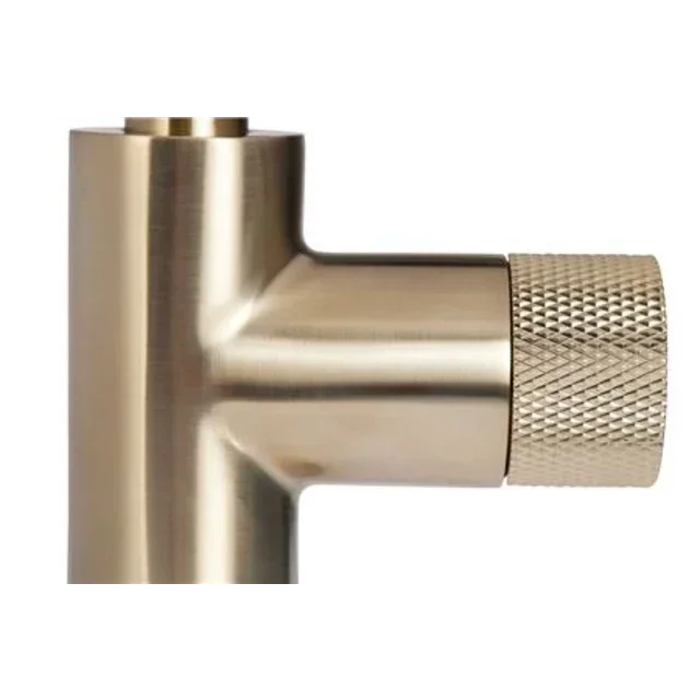 De kraan is afgewerkt met een geborsteld goude kleur, en past in elke badkamer.