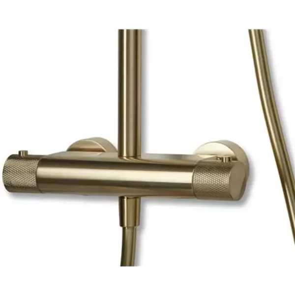 De Schiphorst-Sanitair Facet regendouche is een thermostatische set met een geborsteld goude kleur.